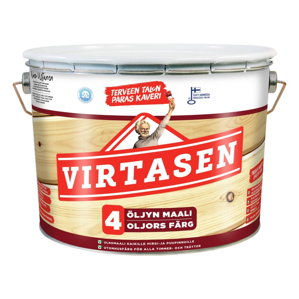 Aimo Virtasen kehittämä 4 Öljyn Maali on oikea valinta niin moderneille hirsitaloille kuin perinteisille puurakenteille. Pellavaöljypohjainen maali sekä hengittää että suojelee puun ydintä. Luonnonöljy ei valu ja maalaaminen on todella helppoa.