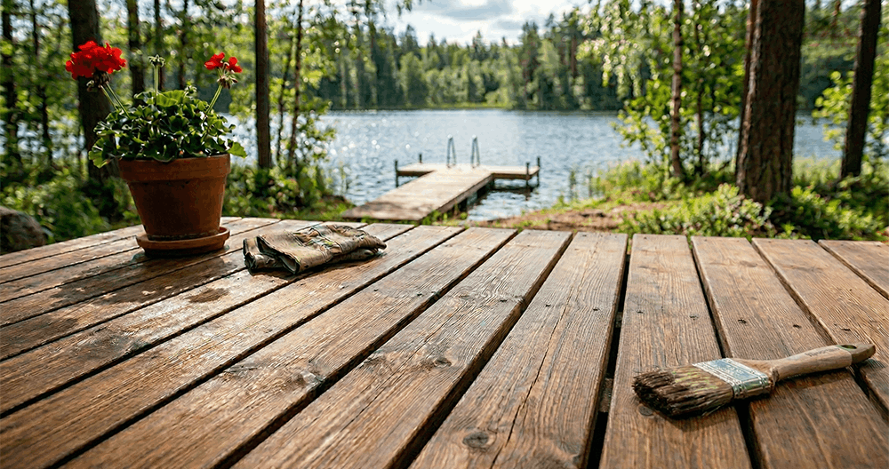 Mökkikausi on alkamassa! Saunaa, laituria ja mökkiä kannattaa huoltaa säännöllisesti. Hyödynnä hyvät säät mökin ulkopintojen ja terassien käsittelyyn – huonommalla säällä voi kunnostaa vaikkapa sisätiloja.